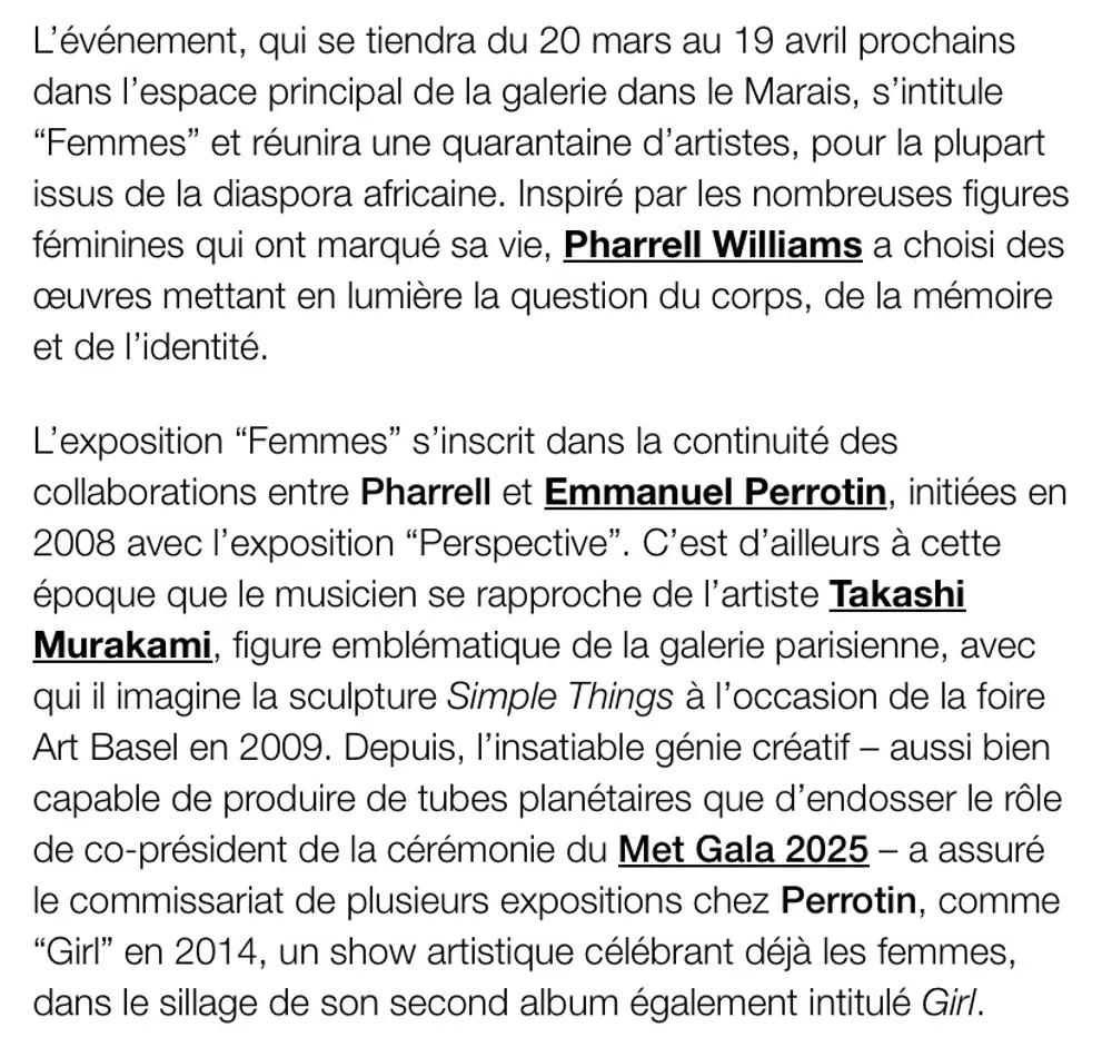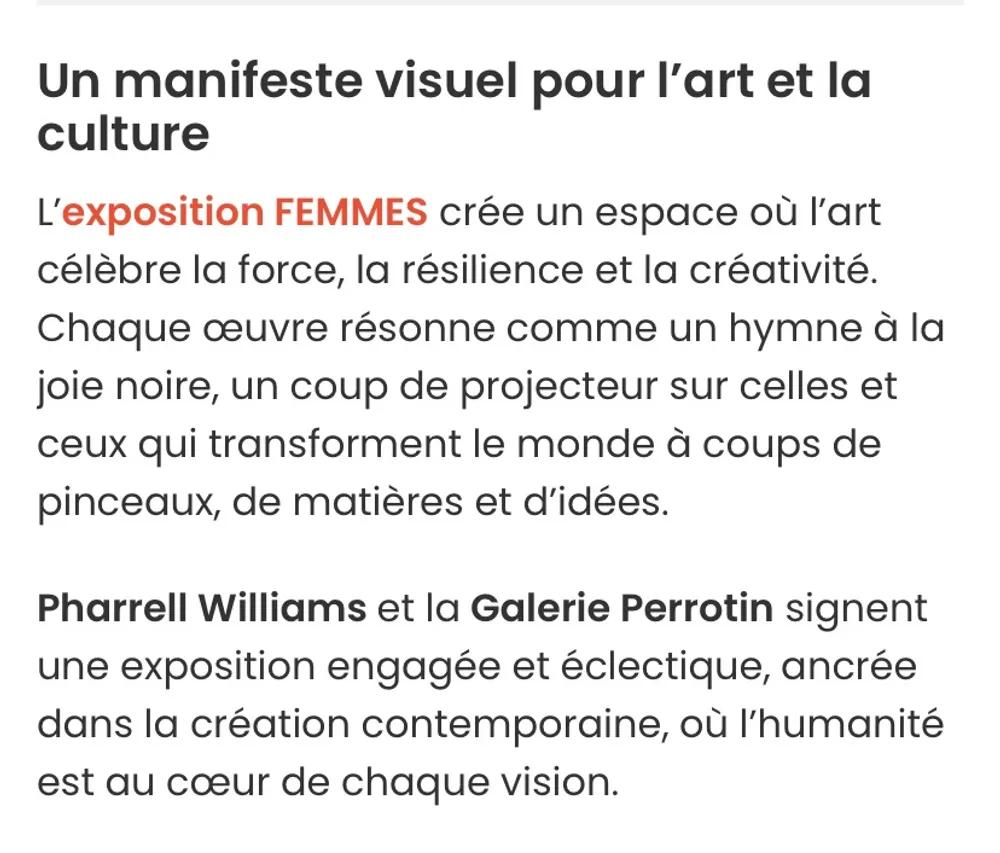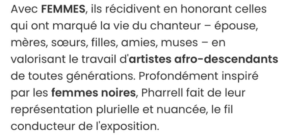 Pharrell Williams et le commissaire de cette exposition qui réunit 40 artistes d’origine africaine, qui mettent à l’honneur les femmes noires. Il sera question de corps, d’images et d’identité. ⛔️Accessible uniquement aux personnes inscrites à l’activité et sur Weezem. Exposition gratuite sans réservation