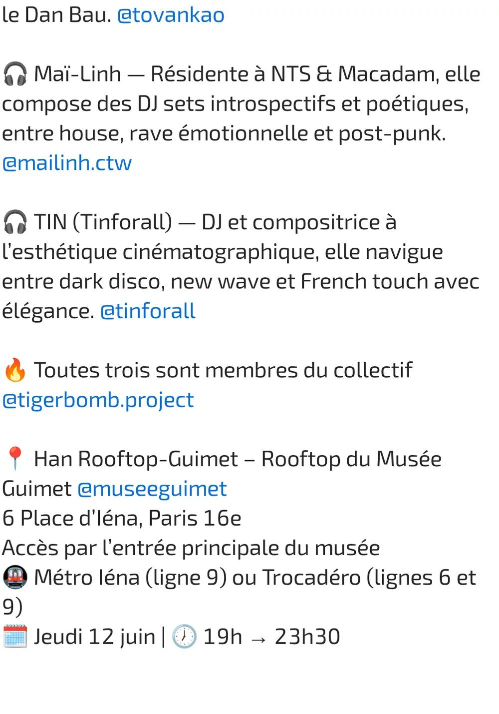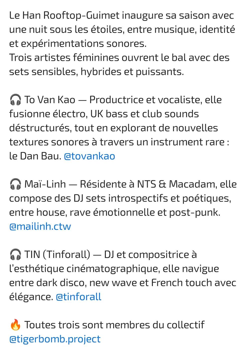 Le Musée Guimet ouvre son rooftop !! Pour cet opening night, une programmation musicale concoctée par TigerBombProject ❤️ Entrée GRATUITE (Accés rooftop seulement) ❌ Profil sans photo