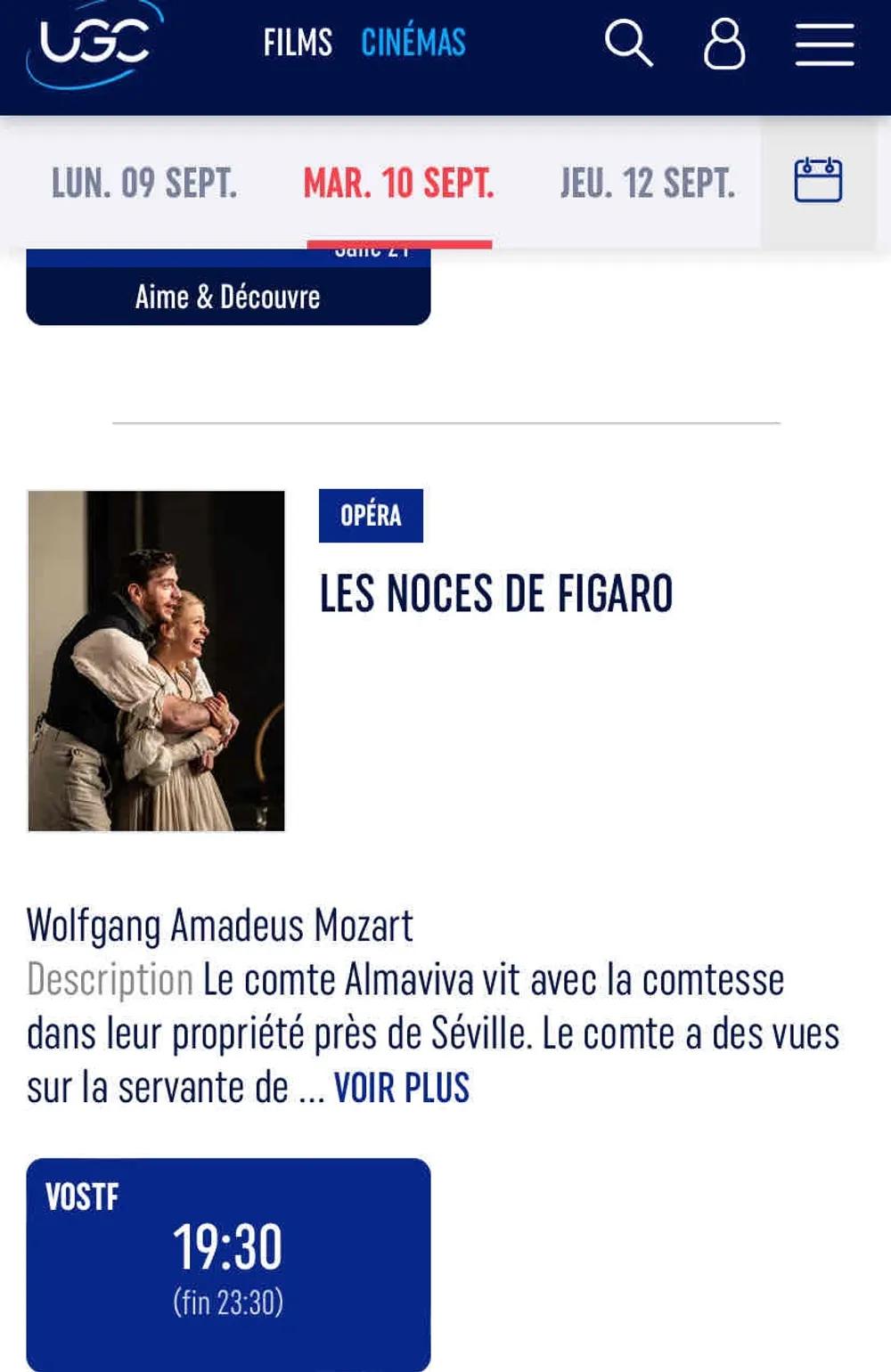 Projection de l’Opera les Noces De Figaro