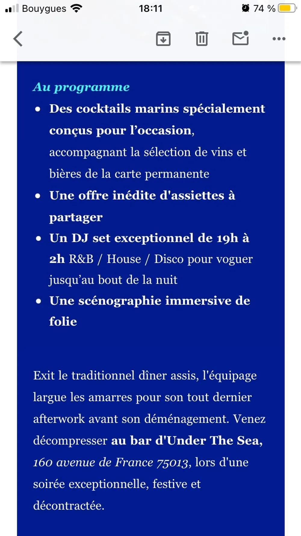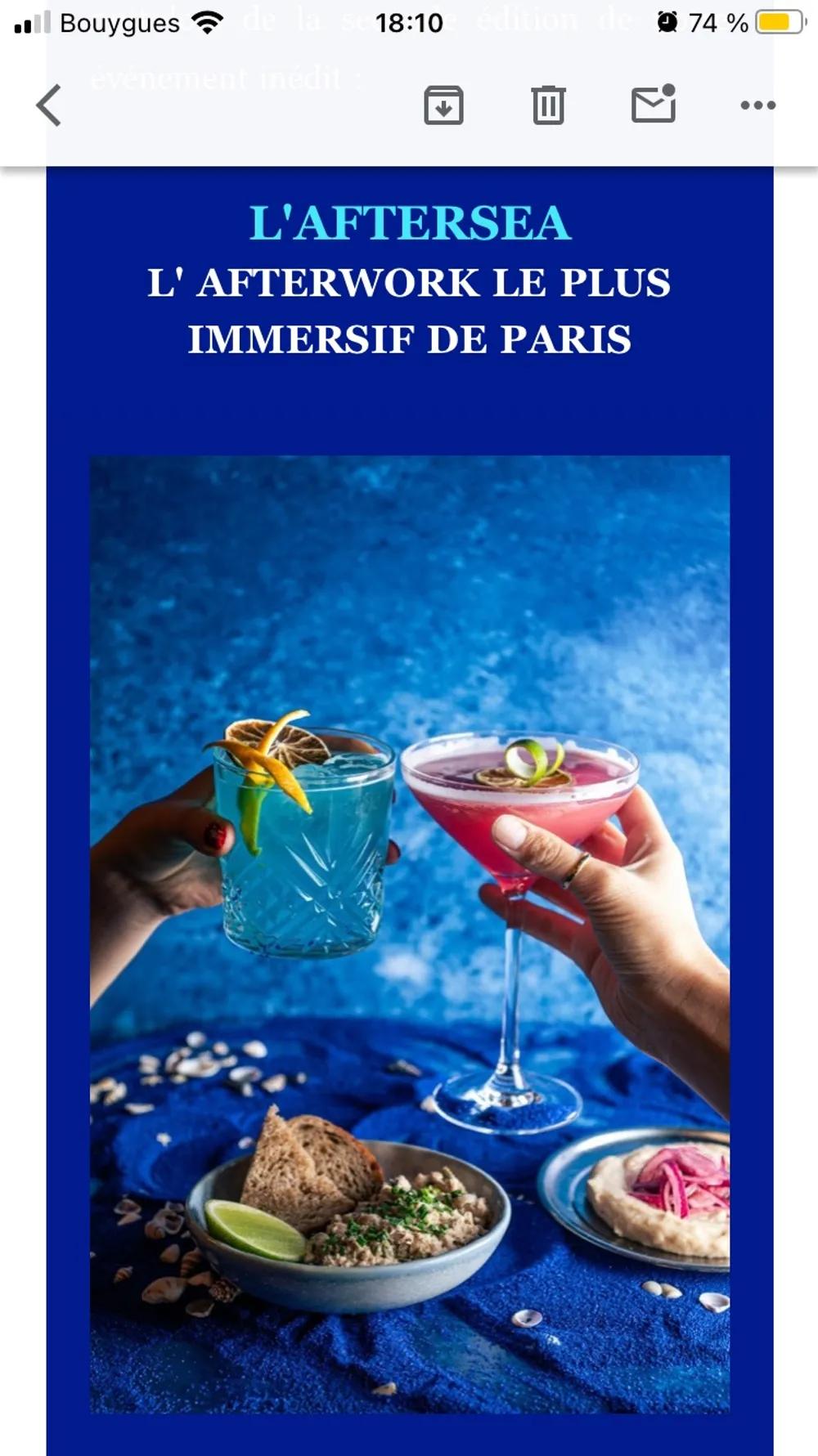 Afterwork, resto et danse sur le thème de la mer : cocktails marins, plats de poisson